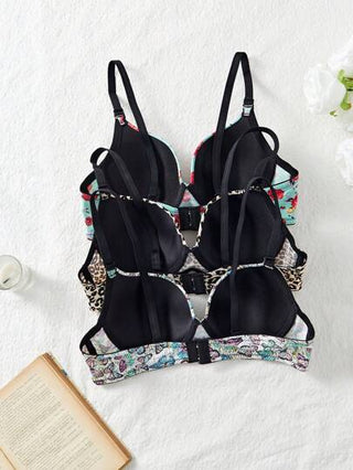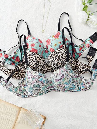 3 قطع من الملابس الداخلية النسائية الناعمة المطبوعة ذات الكوب اللاسلكي المريح