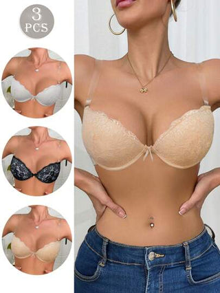 3 قطع من ملابس داخلية شفافة بدون حمالات للنساء ، حمالة صدر ذات دعامة لأسفل ، مناسبة لارتداء ملابس الأعياد والأعراس