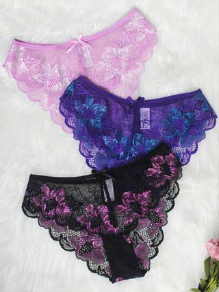3pcs سراويل الدانتيل مثير للمرأة، المرأة محض انقطاع الدانتيل بيكيني سراويل الملابس الداخلية