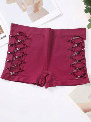 4 حبات/عبوة سراويل داخلية نسائية ذات لون سادة بتصميم ملائم وشبكي مع فتحات هندسية، سراويل داخلية قطنية مريحة ومتنفسة