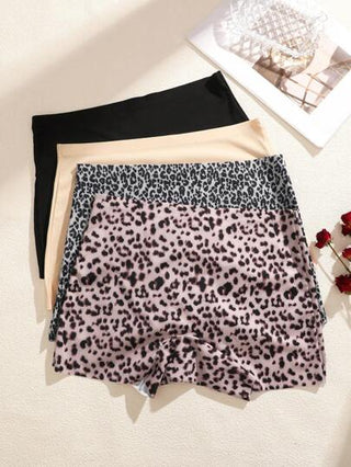 4 قطع/مجموعة سروال داخلي بوكسر للنساء بنمط النمر الجوتي عالي الخصر مريح