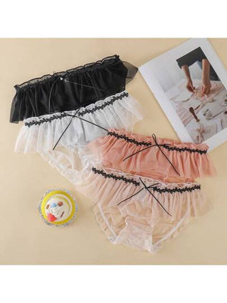 4 قطع سراويل داخلية نسائية أنيقة بفيونكة من اللؤلؤ والشبك بخصر منخفض وجذاب