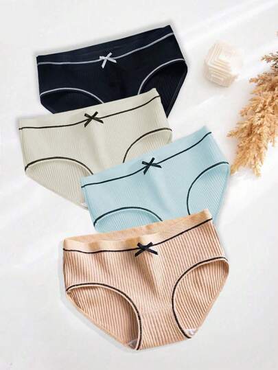 4 قطع سراويل داخلية نسائية مريحة مزخرفة، ملابس داخلية نسائية بارزة