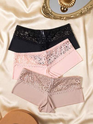 4 قطع ملابس داخلية من الدانتيل الجذاب ، ملابس داخلية منخفضة الخصر غير مرئية ومريحة عالية المرونة مع تشطيب من الساتان.