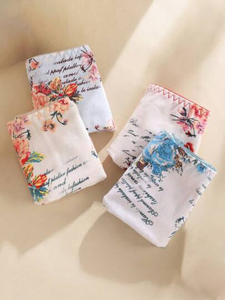 4 قطع ملابس داخلية نسائية أنيقة بسيطة بتصميم زهري من الدانتيل مريحة وقابلة للتنفس