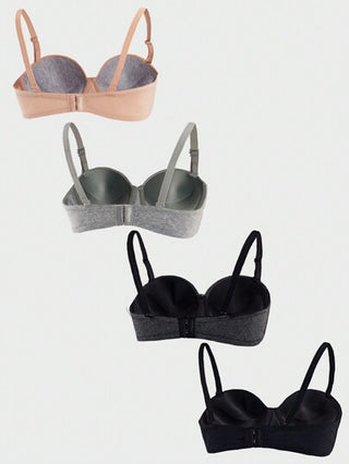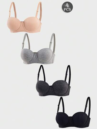 4 قطع من صدريات الدعم متعددة الألوان الناعمة منخفضة الكأس ذات السلك المريحة للنساء ذوات الصدر المسطح