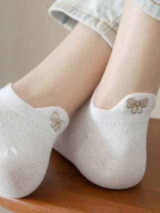 5 أزواج/مجموعة جوارب قارب للنساء، بأشرطة تطريز بيضاء، ماصة للعرق، قابلة للتنفس، مريحة للارتداء اليومي في جميع الفصول، جوارب غير ظاهرة'