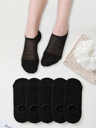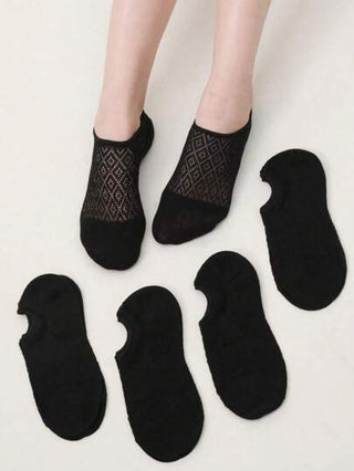 5 أزواج من الجوارب الرقيقة البيضاء والسوداء للنساء بتصميم شفاف غير ظاهر، قصيرة بشكل غير لاصق ، تصميم غير ظاهر ، جوارب خفيفة مناسبة للصيف (بدون كرتون)
