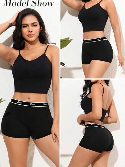 5 طقم سراويل داخلية نسائية قصيرة مريحة بخصر منخفض ومخصرة بريط ألموديل، مثالية للارتداء اليومي ولممارسة الرياضة والاسترخاء