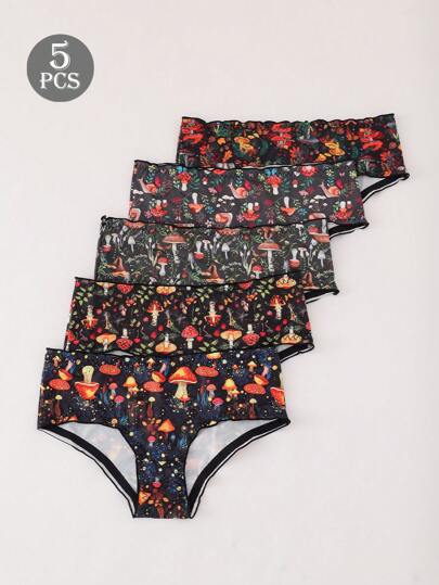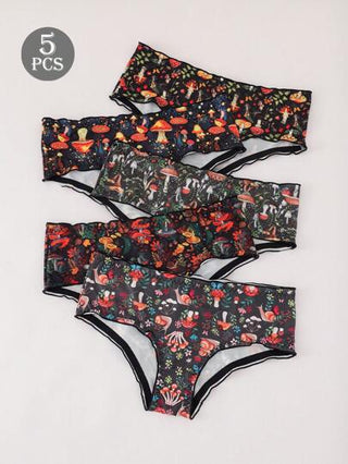 5 قطعة/مجموعة من ملابس داخلية عصرية للنساء مطبوعة بأشكال نباتات وفطريات