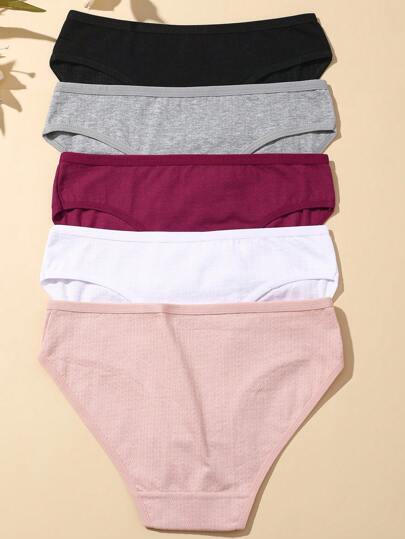 5 قطع للنساء من الملابس الداخلية المصنوعة من الجاكارد المريح الذي يتميز براحة التنفس وشكل مثلث مع خيارات لونية متعددة، نمط بسيط