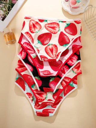 5 قطعة / مجموعة ملابس داخلية نسائية من قماش ناعم مريح مع طباعة فراولة للاستخدام اليومي
