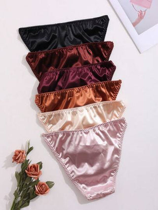 6 عبوات ملابس داخلية نسائية ذات لون واحد لامع، رومانسية ذات خصر عالٍ، مرتفعة المرونة ومريحة ذات طيات