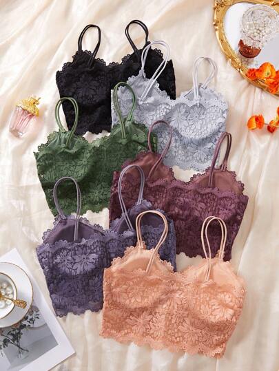 6 قطع / طقم ملابس داخلية نسائية مريحة وجذابة من الدانتيل وبدون حمالات