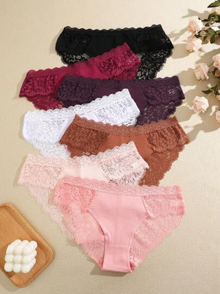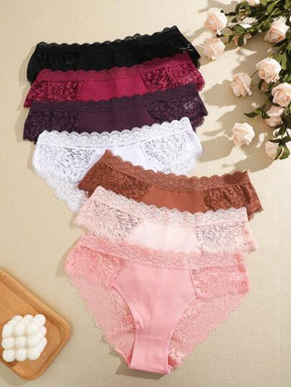 7 قطع/عبوة ملابس داخلية نسائية مطرزة بتصميم الدانتيل منخفضة الخصر، بخاصية التهوية