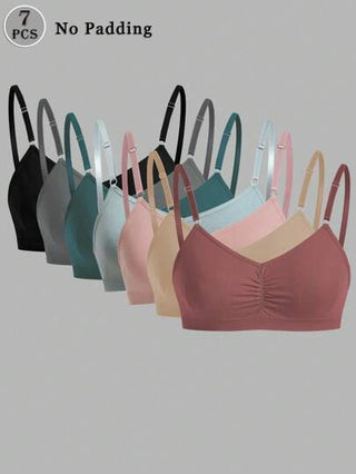 7 قطع طقم ملابس داخلية كاملة، صدريات عادية مريحة مع أشرطة قابلة للتعديل