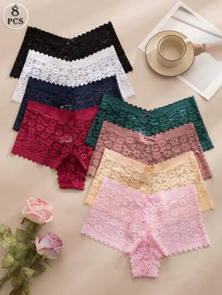 8 قطعة/مجموعة ملابس داخلية نسائية شبكية لامعة وشفافة بزخرفة وردية و عقدة فراشة