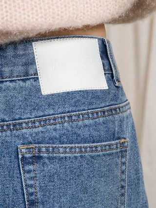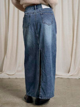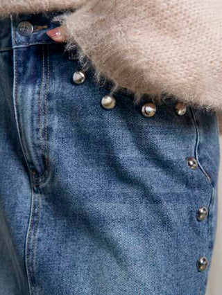 AiiRZ تنورة ماكسي من الدنيم مزينة بمسامير مع شق خلفي