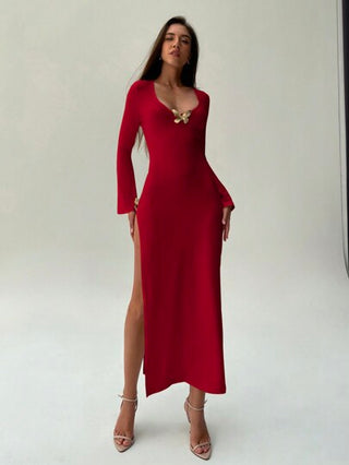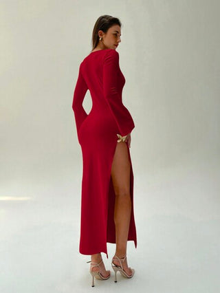Aloruh ثوب طويل الأكمام رقيق السليم ذو شق طويل في الخريف / الشتاء نصف العنق للنساء, وصول جديد