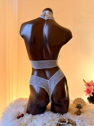 Aloruh شكل بدلة نسائية مثير مزين بالخرز والسلسلة ومصنوع من الدانتيل