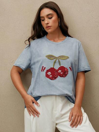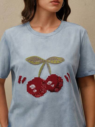 Anewsta بلوزة كاجوال قصيرة الأكمام بياقة مستديرة بطبعة الكرز للمرأة ذات المقاسات الكبيرة، صيفية