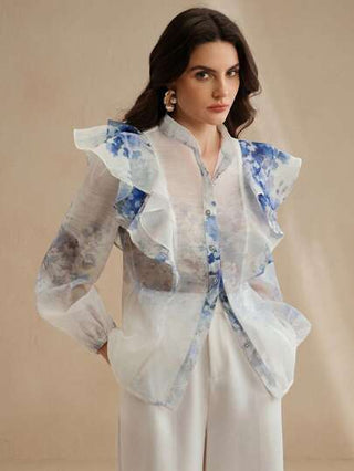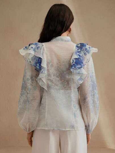 Anewsta بلوزة نسائية أنيقة بأكمام فانوس وذيل مكشكش