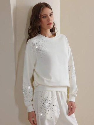 Anewsta بلوزة نسائية أنيقة وكاجوال مزخرفة بالراين ، فاخرة وعالية الجودة