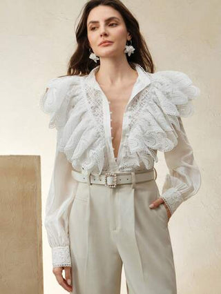 Anewsta بلوزة نسائية عالية الجودة ذات تصميم راقي مزينة بالدانتيل للربيع والصيف