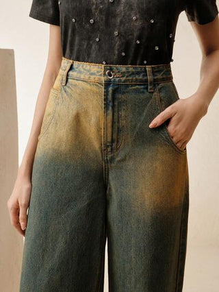 Anewsta بنطلون جينز كاجوال ذو ألوان متباينة من الطراز القديم الفينتاج مع جيوب