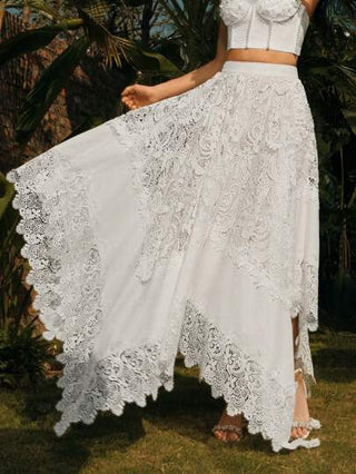 Anewsta تنورة شيفون فاخرة ذات تطريز مُخرَم وتصميم رومانسي، مناسبة للربيع والمناسبات والعطلات