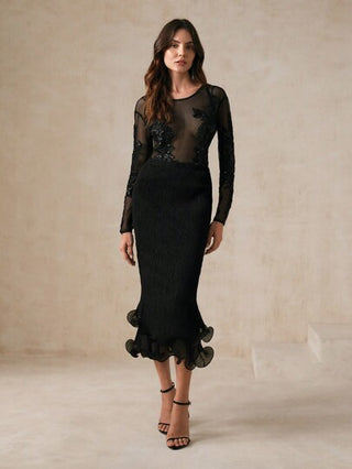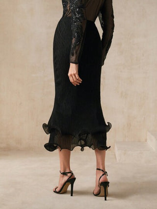 Anewsta تنورة ماكسي نسائية مصممة بتصميم ضيق مع تنورة مطوية من الصدارة على شكل فطر أنيق متعدد الطبقات