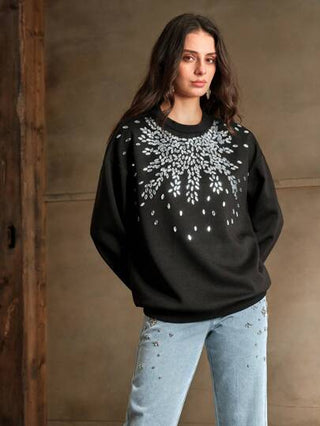 Anewsta سترة قطنية رقيقة مزينة بالراين ستون للنساء للخريف/الشتاء