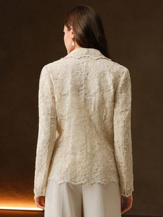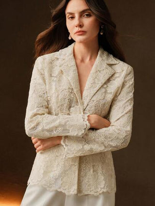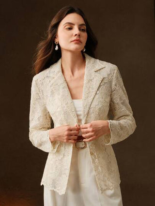Anewsta سترة نسائية بياقة وأكتاف مزركشة بالدانتيل، كم طويل مبطن وفيت، مناسبة لارتداء في السنة الجديدة
