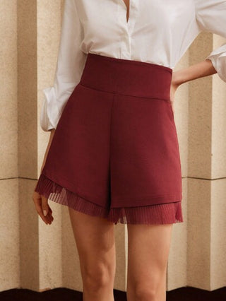 Anewsta شورت أنيق وعملي للنساء بتنجيد مطوي بفريل الذيل باللون الأسود