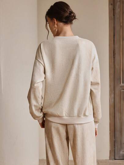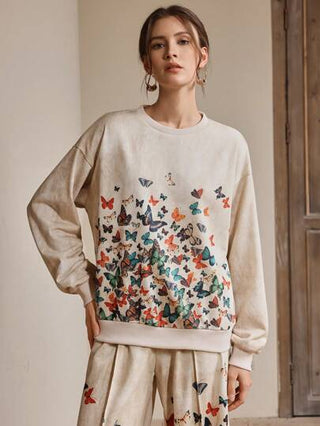 Anewsta قميص ثقيل كاجوال طويل الأكمام بطبعات أنيق للرقبة المستديرة للنساء