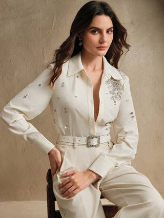 Anewsta قميص فستان نسائي فاخر مزين بتفاصيل زهرية مرصع بالترتر ثلاثي الأبعاد باللون المشمشي