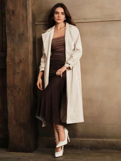 Anewsta معطف جاكيت رياح أنيق للتنقل بخصر مربوط من جلد البولي يوريثان اللامع
