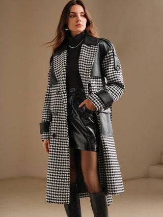 Anewsta معطف نسائي ستريتش فاخر كتان مخروط مرقع بلون الأصوص الأسود والأبيض ، لونان أنيقان ومنمطان بالمربعات والخطوط للاستخدام اليومي الغير رسمي ، أكمام عادية مع جيب وياقة