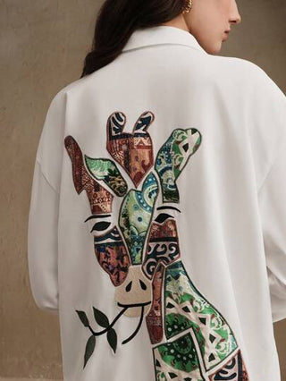 Anewsta ملابس علوية رسمية فضفاضة مريحة مطرزة براسم حيوان طباعة ريشة بأكمام طويلة وياقة، مناسبة للربيع والصيف والمناسبات كالتخرج