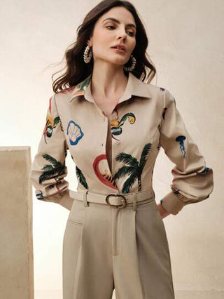 Anewsta ملابس علوية نسائية كاجوال أنيقة بأكمام فانوس طويلة ذات نمط شجرة جوز الهند، أزياء إجازة ملابس صيفية