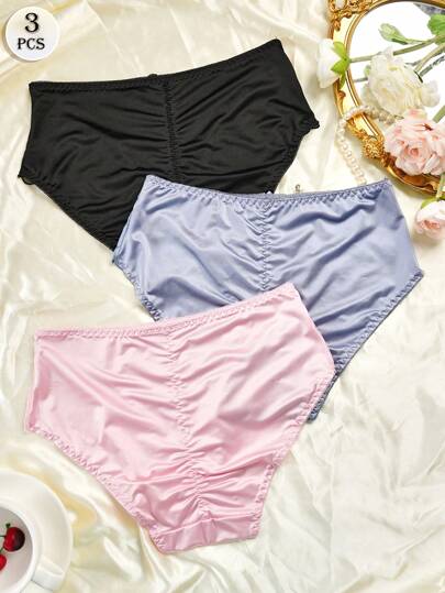APRSEA 3 قطع ملابس داخلية للسيدات مزينة بالدانتيل والأزهار وعقدة الفيونكة، من القماش الساتان اللون الواحد، بسيطة وراحة مثلثة الشكل