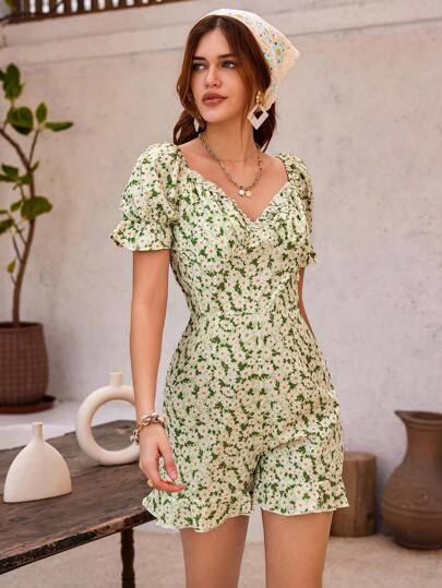 Aveloria بذلة لطيفة ذات كسرات مزهرة بحزام خصر