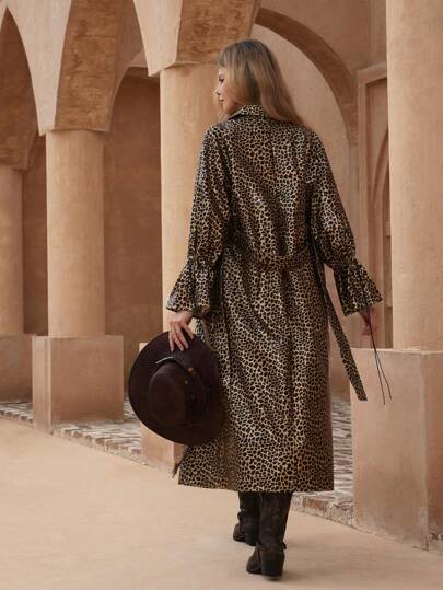 Aveloria قطعة واحدة من الملابس الخارجية المزينة بأزرار طويلة من جلد البو ذو طباعة نمر عشوائية
