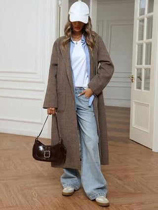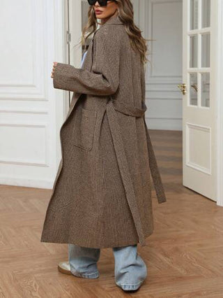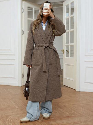 Aveloria معطف جديد أنيق من النسيج المربع فرنسي الطراز مناسب للخريف والشتاء، له شراك على الياقة وخصر مقمصن وجيوب خاصر