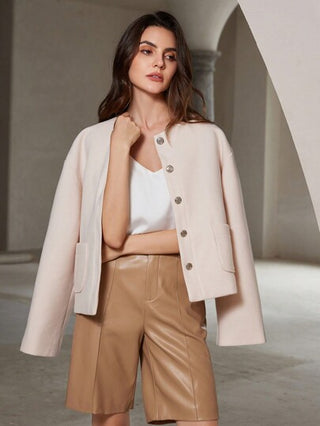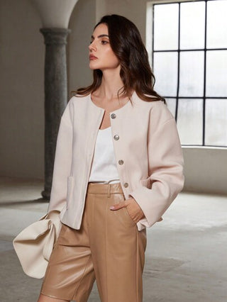 Aveloria جاكيت جيب ذات أزرار معدنية قصيرة بياقة مستديرة أنيقة عتيقة