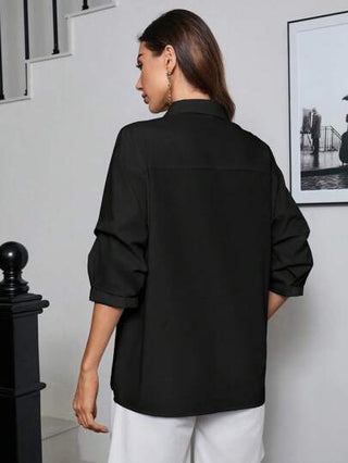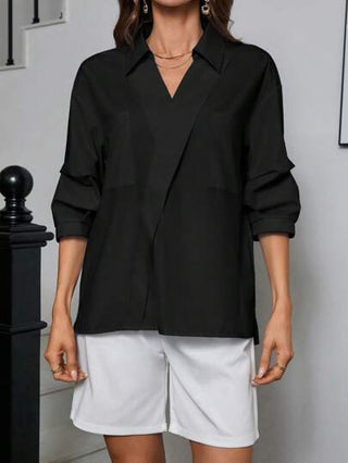 Aveloria Modichic بلوزة عمل بأكمام 3/4 وذيل عريض غير متماثل بياقة على شكل حرف (V) نسائية