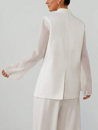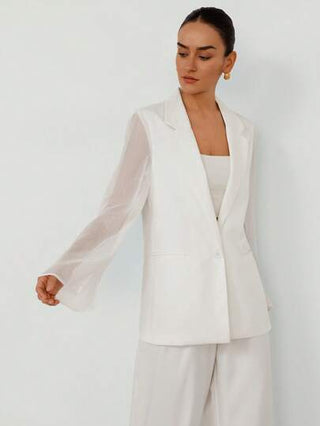 Aveloria Modichic بليزر طويل الأكمام للنساء من تصميم أنيق متعددة الاستخدامات، أبيض بأسلوب أنيق بتصميم حداثي ذو فتحة رقبة عميقة على شكل الحرف V مصنوع من أقمشة شفافة وقطع متنوعة