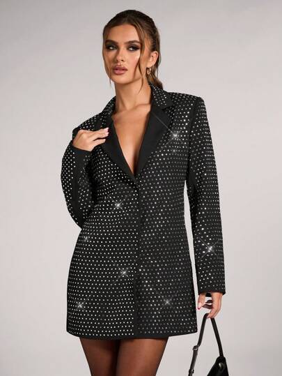 BAE بليزر نسائي موضة الخريف مزين بحجارة الراين عند قصات الرقبة، فستان بدلة ملائم للحفلات والمهرجانات، ملابس نسائية مناسبة لمناسبات والخريف والشتاء، مجموعة ملابس كوستيوم عيد الميلاد للنساء، فستان مرصع بحجارة الراين، مجموعات نسائية للخريف