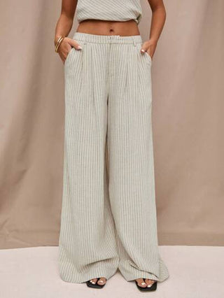 BAE بناطيل كتان مخططة واسعة القدمين مناسبة للصيف وللارتداء في المكتب، الخروج اليومي، رحلات الشاطئ وإيطاليا، الخروج، أزياء السفن السياحية، ملابس البرانش، وأزياء إيبيزا