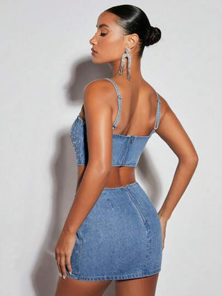 BAE تنورة دنيم بتفاصيل حجر الراين سحاب خلفي